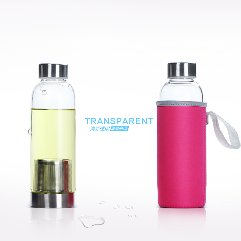 仟艺红耐热水瓶玻璃车载水杯透明过滤杯子便携茶具创意花茶杯带盖